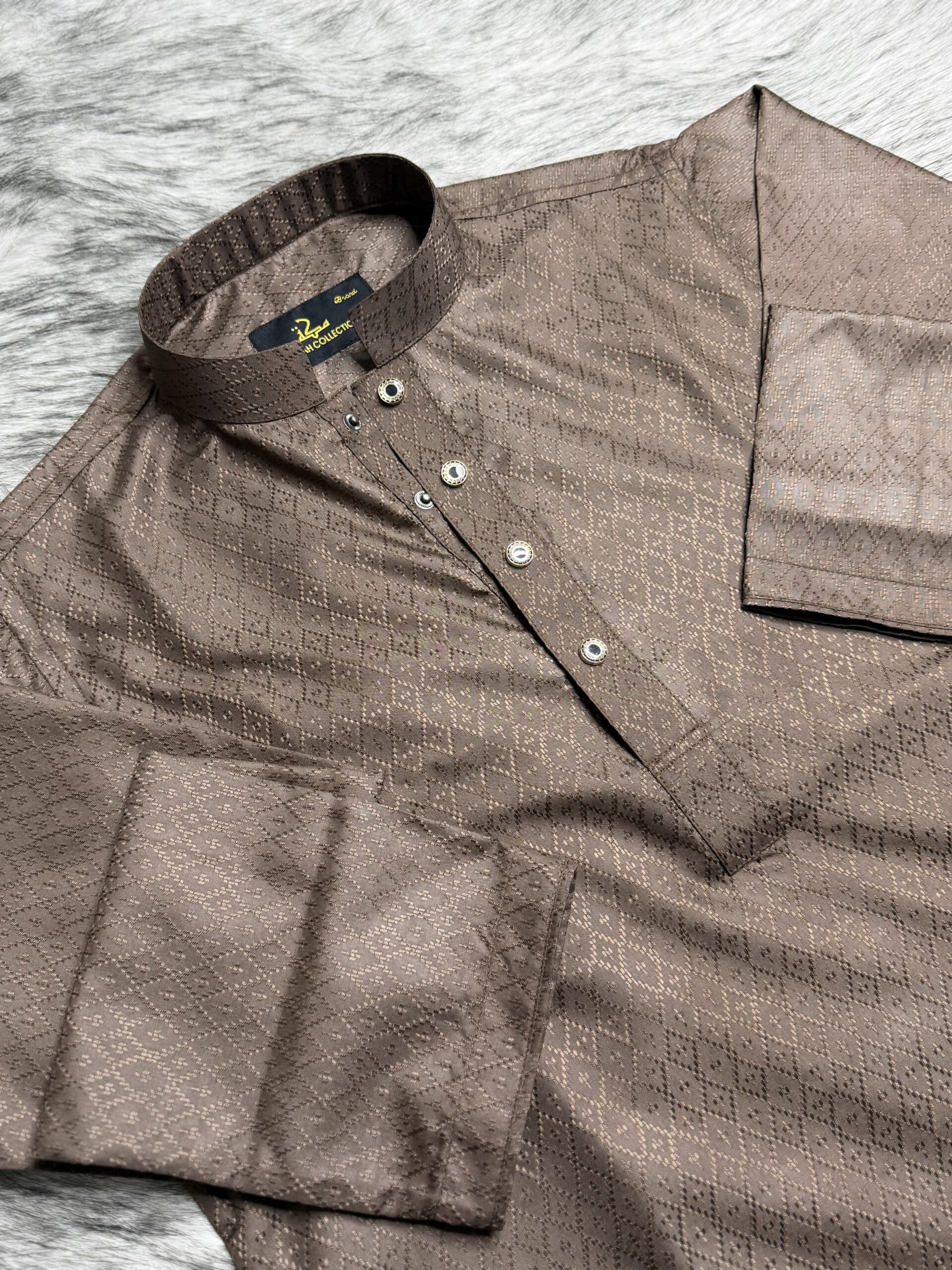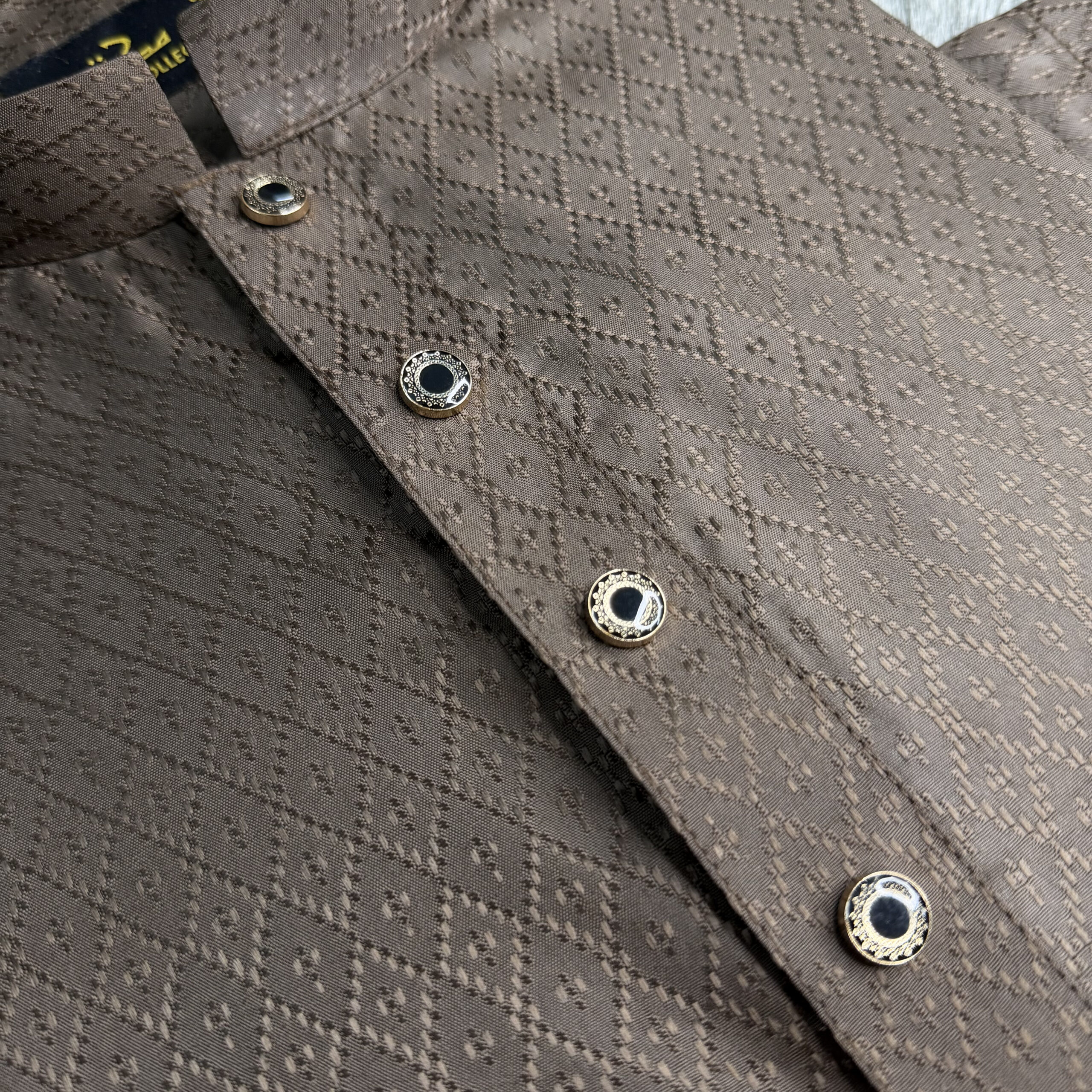 Style this Panjabi effortlessly with a classic pajama and sandals for a traditional vibe, or pair it with loafers for a more modern, refined look. It’s the perfect choice to complete your elegant ethnic style.